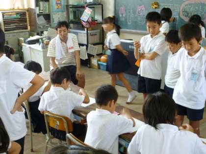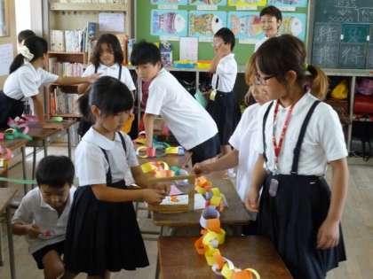 1.【4年1組】「スタンプ・ポンポン」:15秒でいくつ押せるかを競います。