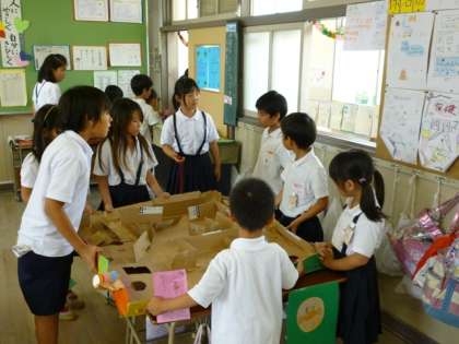 3・【4年3組】「ボール迷路」:ボードごと持ち上げボールをゴールに。