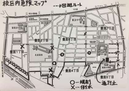 ○できるだけ広い道を選んで登校してください。