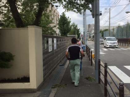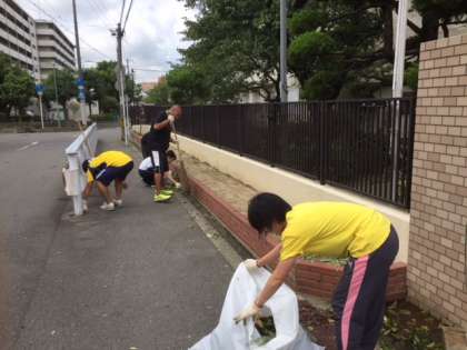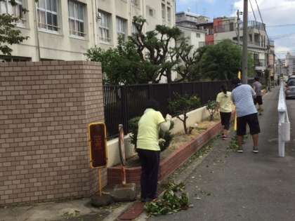 ○写真は、作業の最後の方で学校まわりの飛来物の清掃の様子です。作業