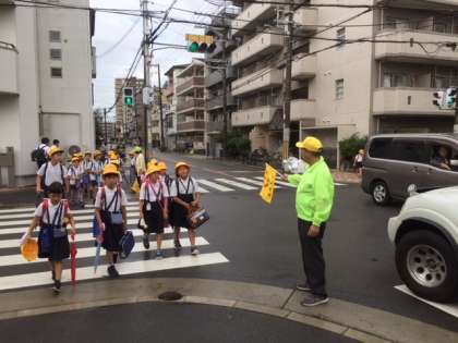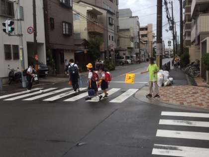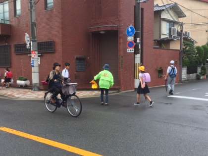 あいにくの天気でしたが、校区の交通量の多い場所に地域の方が立ってくださりました。