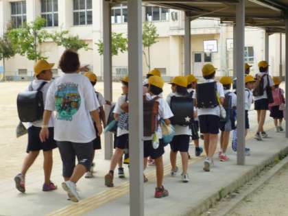 大型の台風が接近し、風雨が激しくなることを想定した集団下校です。