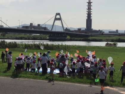 生活科の学習で、淀川河川敷へ 虫さがしに行きました。