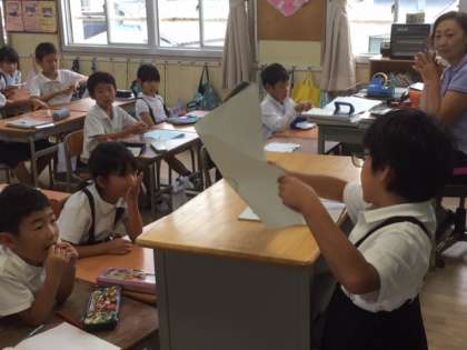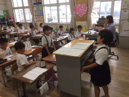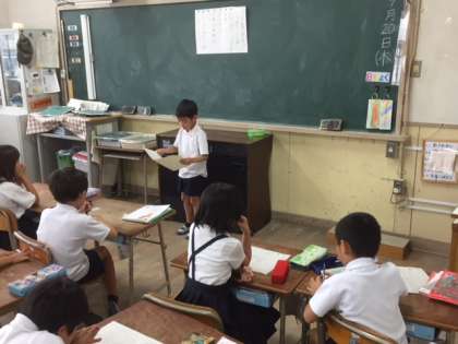 子どもたちにとって、伝えたいことを順序立ててわかりやすく話すことは意外に難しく、しっかり考えて下書きした文章をもとに発表し、質問にもしっかり答えていました。