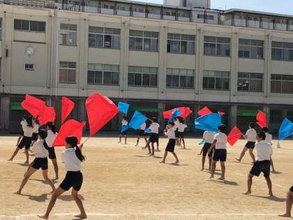 初めて旗を持って練習したにもかかわらず、旗を振るときの、迫力ある音を出すことができました。