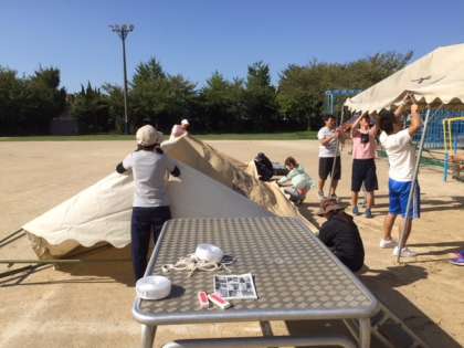 金曜日の前日準備では、台風対策でほとんど準備ができませんでした。