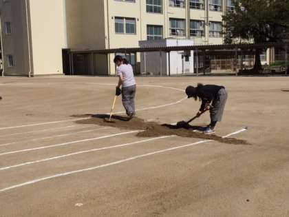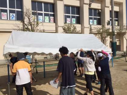 テント設営、運動場整備、ライン引き、入退場門設置、各種表示掲示…と一致団結してすすめることができました。