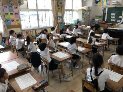 栄養教諭の先生の「これから嫌いな食べ物も少しでも頑張って食べようと思う人?」