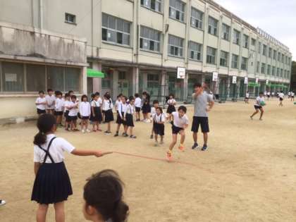 児童につけたい体力に応じた遊びを担任も入って行うことで、体力の向上を目指します。今日は3年1組が長なわをしていました。