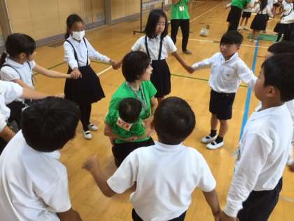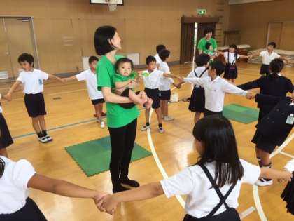 最後は、赤ちゃん先生を囲んで「手をつなごう」の大合唱です。