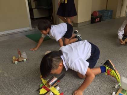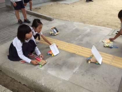 一見すると図工科のようですが、国語科の「ヨットカーの作り方」の単元で、実際にひとりひとりヨットカーを作りました。
