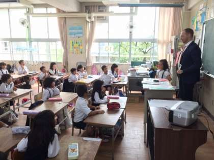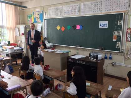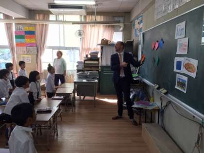 アメリカ出身のAdam先生が、身ぶり手ぶりを交えて、英語で「数字」「色」「気持ち」を表す単語を教えてくださいました。