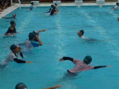 ※「くつ」をはいての着衣泳は水質汚染等の関係から実施していません。