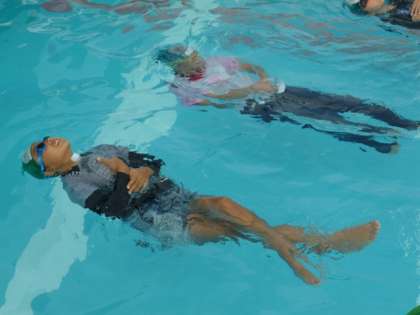 ●シャツをふくらませた「背浮き」 ●ペットボトルを使った「ラッコ浮き」