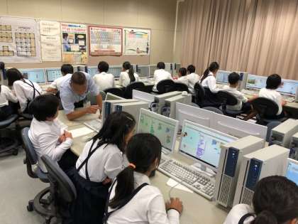 昨日、6年1組は、ICTの支援に来てくださっている支援員さんと、プログラミングの学習に取り組みました。