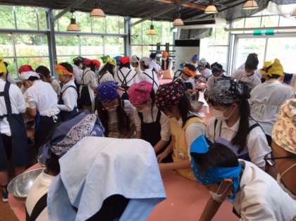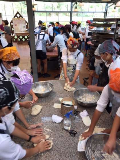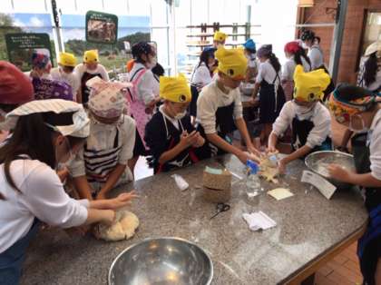 パン作り、なかなか固まらなくて、悪戦苦闘してる子も。何とか発酵までみんないけました。(校長)
