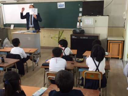 今日は 英会話学校イーオンの講師の先生による2年生の2回目の授業でした。