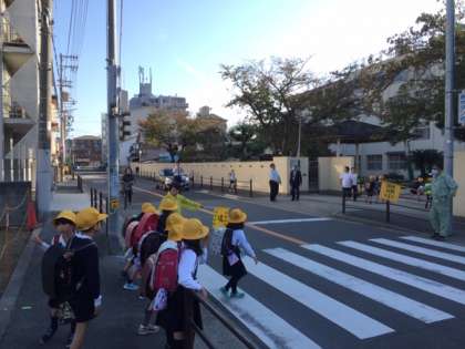 今日は東淀川警察の方にも校区を巡回していただきました。