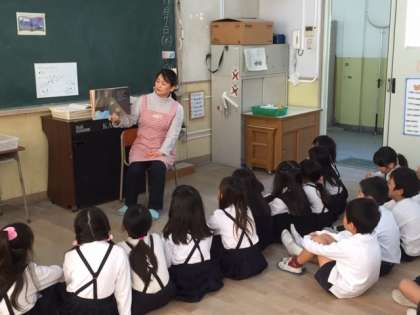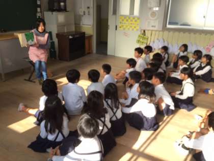 保護者や地域の方々で結成するボランティアグループ『えほんばたけ』さんが各学年順番に読み聞かせを行ってくれています。