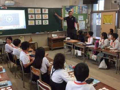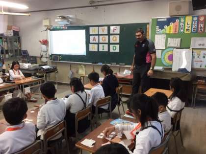 外国語活動(英語)の学習は、C-NET(Osaka-City Native English Teacherの略称)オーストラリア出身のマシュー・ゲイル先生が学級担任と協力して、学習を行います。