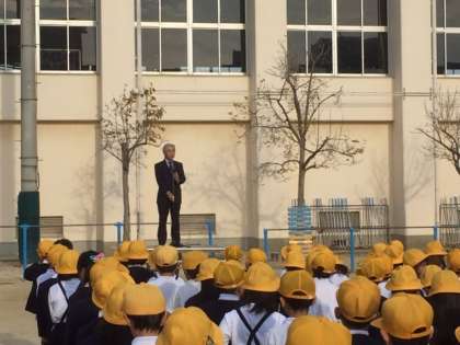 冷え込みが少しすすんんだ運動場での朝会です。