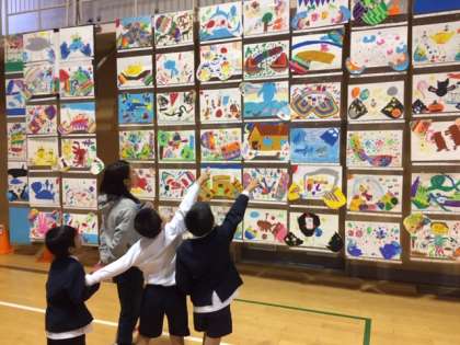 担任の先生方も、きのうの「図工研修会」で学んだ各学年の絵画や立体作品の作成のポイントや見どころを子ども達にしっかり伝えていました。