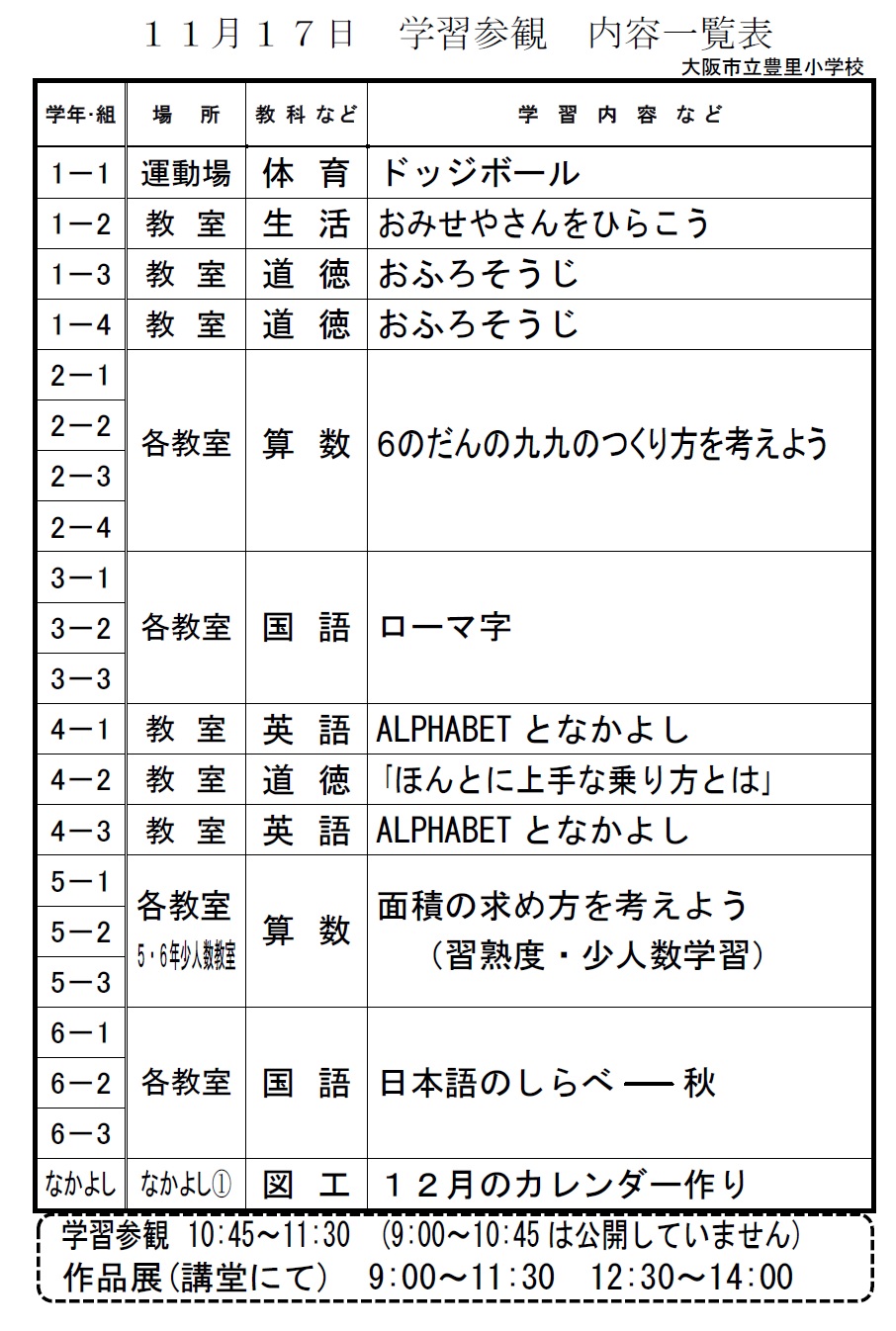 ○2時間目 9:45〜10:30 参観できません
