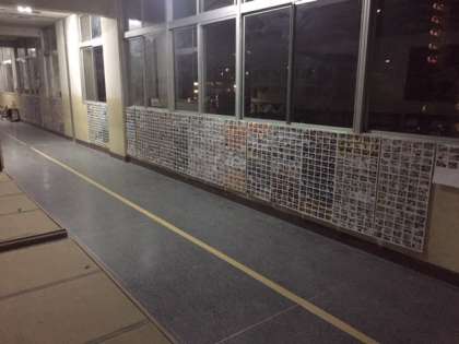 6年生の廊下に写真屋さんが撮影した「修学旅行」の写真がたくさん貼られています。