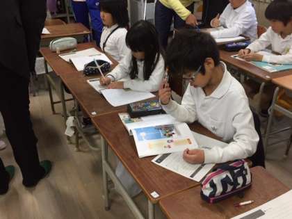 学年の代表者(教諭)が校内公開授業を行う授業研究会があります。