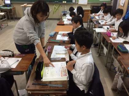 半径と直径の関係、中心の場所、コンパスの扱い方…と教えることがたくさんで、先生方も教室の中をぐるぐる回りながら手取り足取り教えていました。