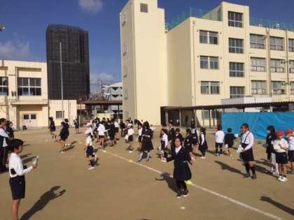 職員室前でも、縄跳びをしている児童もたくさんいます。