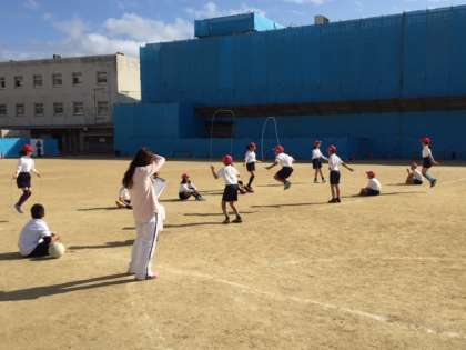 しかし、今日の縄跳びは暑そうで、子どもたちも汗ばんでいました。 (教務)