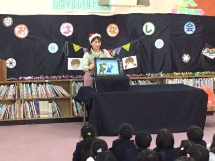 今日は、えほんばたけさんが1年生対象の「お話し会」をしてくださいました。