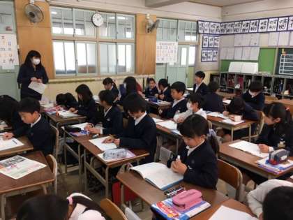 習熟度別学習は「どんどんすすめたい」から「じっくり学習したい」まで、3学級を4分割して、4つの教室で勉強します。(基本的には自分で選んだクラスで学習しています)