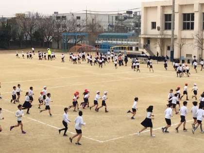 先週はインフルエンザ等の影響で延期になったり1学年や2学年だけで実施になったりした「耐寒かけ足」、ようやく3学年そろっての実施が実現しました。