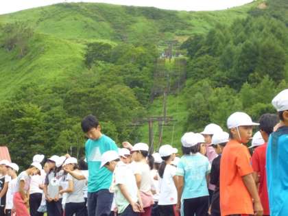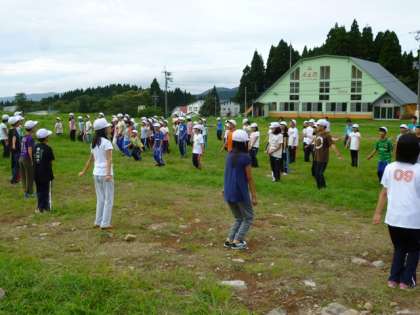 ラジオ体操でしっかり目をさまし、今日一日の活動予定と諸注意を受けます。