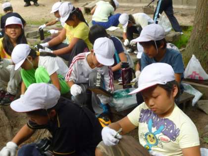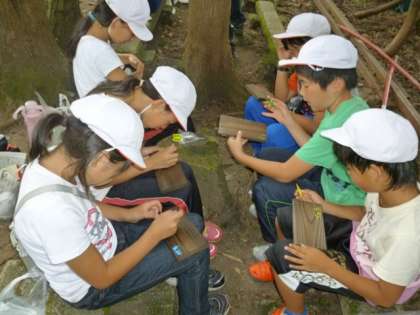 磨いた後は、ペイントマーカーで着色。思い出の作品つくりです。