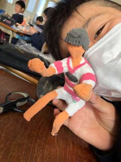 図工では、「15年後のぼく・わたし」と題して、芯材と粘土を使い、将来の自分について考えています。