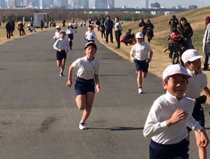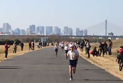 晴天の河川敷を疾走2 〜3・4年生 耐寒かけ足大会〜