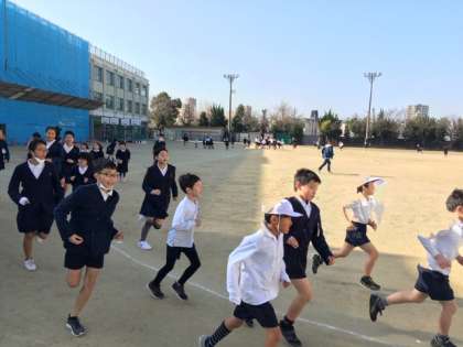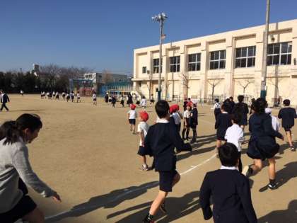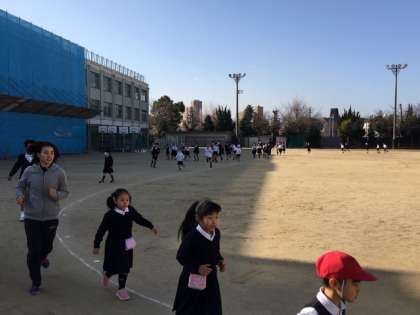 今日も、木曜日に「耐寒駆け足大会」が予定されている5・6年生をはじめ、1・2年生の子どもたちも、先生と一緒に元気いっぱい走っていました。