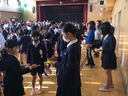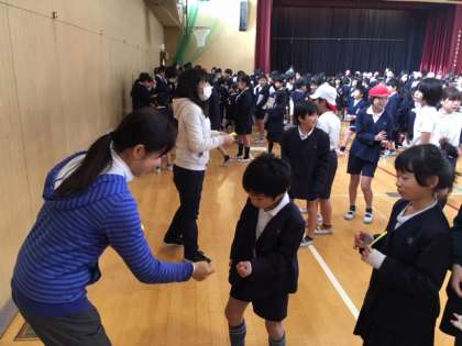 集会委員会児童や先生方とじゃんけんをして、勝ったらカードをもらい、負けたら持っているカードを返すルールで行いました。