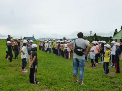 今にも、小雨がぱらつきそうで、予定の変更をしっかり聞いています。