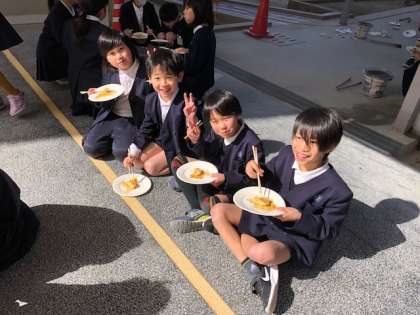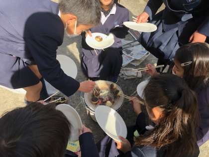 自分たちで火をおこして焼いたおもちはいつもよりおいしく感じたそうです。