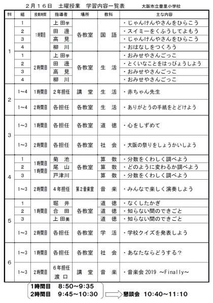 ●今回の土曜授業は、1・2時間目の実施となっていますので、お間違