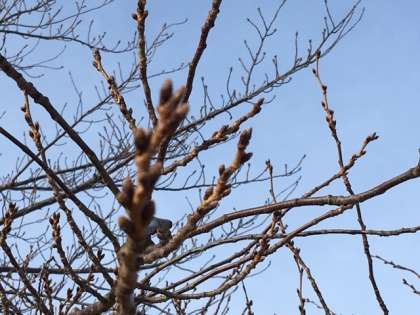 芝生コーナーの桜のつぼみ、少しふくらみました。 (教務)