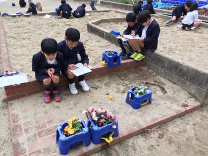 5時間目、2年2組の生活科『パンジーの観察日記』