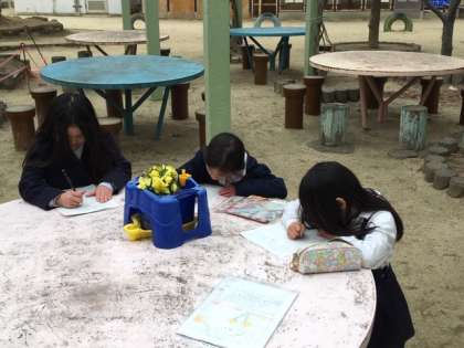 冬でもきれいに花を咲かせるパンジーを、色鉛筆も使って上手に描いていました。