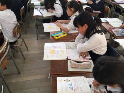 2階に上がると3年生が算数の学習中