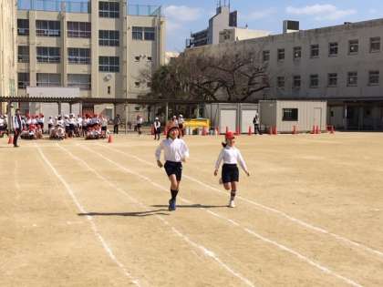 50m走の測定の後は、先日行われた「淀川河川敷かけ足大会」の表彰式も行われました。男女それぞれの上位5人が大きな拍手の中、賞状を受け取っていました。 (教務)