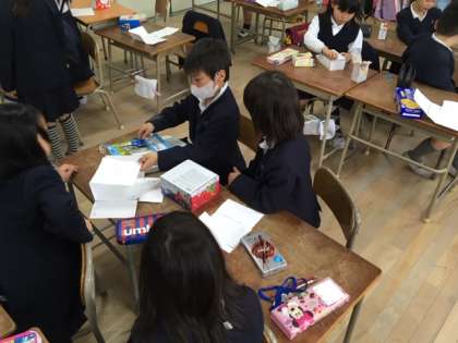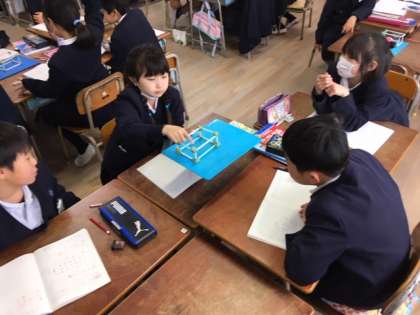 2年生1組と2組は、算数科の「はこをつくろう」の学習をがんばっています。